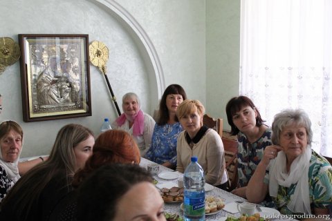 Пасля агульнага фатаграфавання адбылася сумесная трапеза, якая ў сястрыцтве заўсёды адбываецца цёпла і нават незвычайна, паколькі гэта не толькі чаяпіцце і “паяданне ласункаў”, прыгатаваных сёстрамі з любоўю. Тут адбываюцца зносіны і арганізуюцца сустрэчы з духаўніком і настаяцелем, якія заўсёды адзначаюць, што ўдзячнасць сёстры заслужылі сваёй працай у храме і на яго тэрыторыі, дабрачыннай дзейнасці.