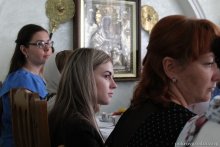 Па-першае, Боская літургія ў Свята-Вольгінскім храме служылася адмыслова для сястрыцтва. Па благаславенні духаўніка абшчыны протаіерэя Уладзіміра Барысевіча, споведзь была супольная. Але такая шчырая і кранальная – сёстры са слязамі на вачах падыходзілі, каб багавейна прыкласціся да Крыжа і Евангелля. “Госпадзі, даруй нам, грэшным…” Таму годным і трапяткім стала прычашчэнне Самога Цела і Крыві Госпада нашага Іісуса Хрыста на адпушчэнне грахоў і Жыццё Вечнае.
