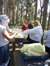 Група навічкоў, што ўпершыню прыехалі ў абіцель, адправілася на экскурсію. Некаторыя паломнікі засталіся на паслушанне ў трапезнай. Іншыя потым далучыліся пасля экскурсіі. Бо трэба было дапамагчы труднікам падрыхтаваць тэрыторыю, сталы і ежу да прыёму новых гасцей. Балазе, час дазваляў і папрацаваць, і адпачыць.
