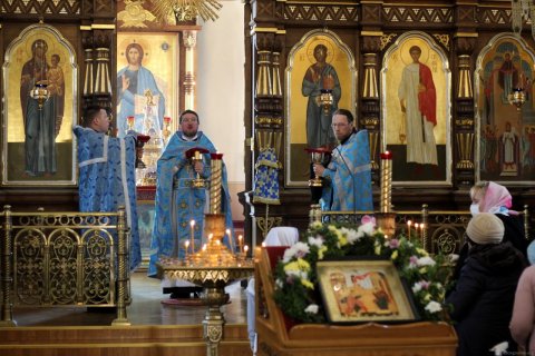 7 красавіка 2020. Благавешчанне Прасвятой Уладычыцы нашай Багародзіцы. Свята-Пакроўскі кафедральны сабор горада Гродна. Святочныя набажэнствы ўзначаліў Высокапраасвяшчэннейшы Арцемій, архіепіскап Гродзенскі і Ваўкавыскі. Чыталася Евангелле паводле Лк. 1:24–38 (зач. 3).