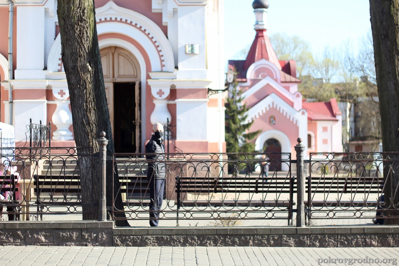 12 красавіка 2020. Уваход гасподні ў Іерусалім (Вербная нядзеля). Свята-Пакроўскі кафедральны сабор горада Гродна. Святочныя набажэнствы ўзначаліў Высокапраасвяшчэннейшы Арцемій, архіепіскап Гродзенскі і Ваўкавыскі. Чыталася Евангелле паводле Іаана, ХІІ, 1-18 (зач. 41).