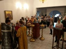 Літургію ўзначаліў духаўнік школы іерэй Аляксей Саўко. Да пачатку богаслуження прысутныя былі азнаёмленыя з гісторыяй фарміравання чыну літургіі раней-асвячоных Дароў. Падчас літургіі святар тлумачыў сэнс падзей, якія адбываюцца.