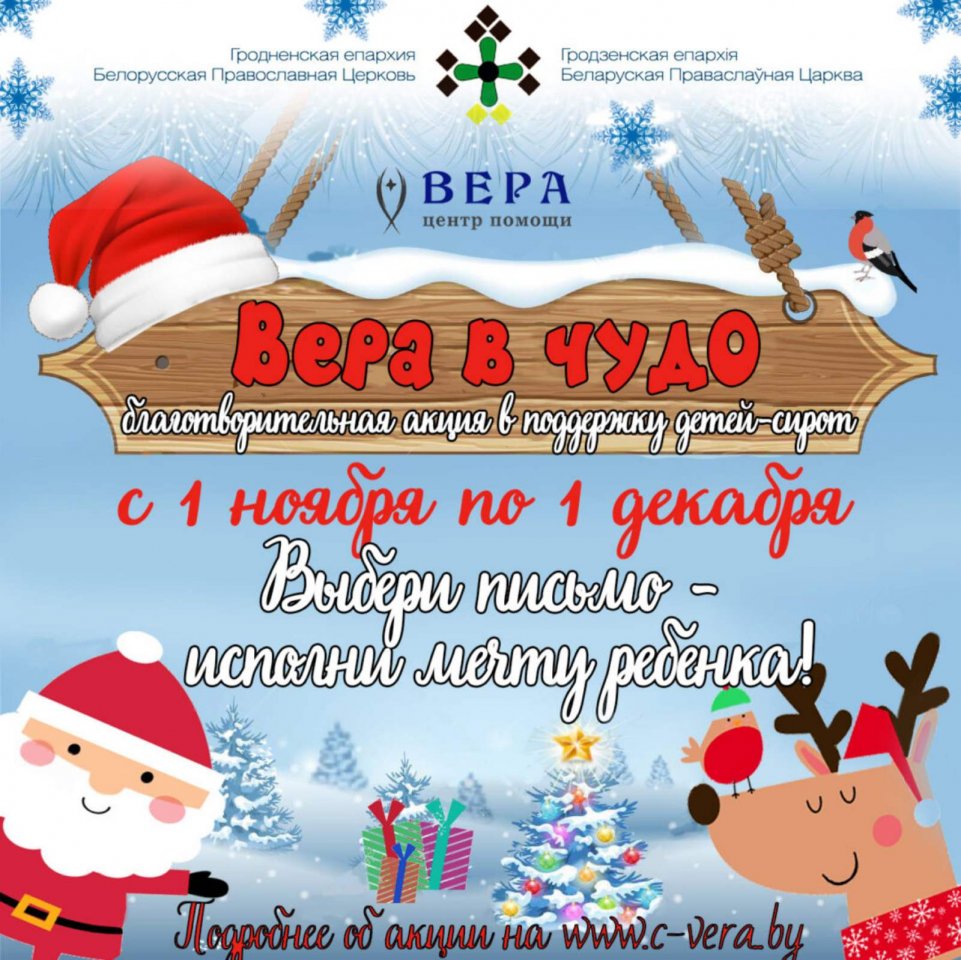 В 2021 году в проведении благотворительной акции «Вера в чудо!», которую проводит социально-благотворительное учреждение помощи детям и взрослым Центр помощи "Вера" (директор Мисюкевич Антонина Владимировна) по благословению архиепископа Гродненского и Волковысского Антония, активно принимает участие и Гродненская епархия Белорусской Православной Церкви.