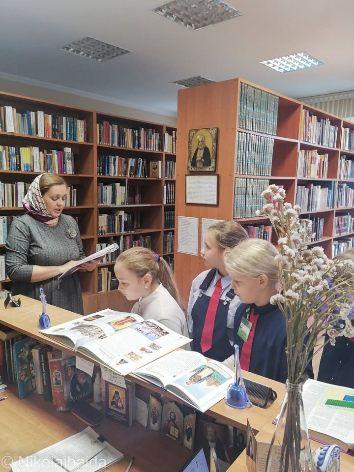 11 ноября, по благословению настоятеля Свято-Покровского кафедрального собора, в рамках факультатива "Основы духовно-нравственной культуры и патриотизма" ребята из Гродненской городской гимназии посетили соборную библиотеку.
