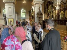 25 мая, в Неделю 6-ю по Пасхе о слепом, клирик кафедрального собора Покрова Пресвятой Богородицы г.Гродно, руководитель православного центра "Трезвение" иерей Михаил Перец провел экскурсию по главному храму Гродненской епархии для паломников из прихода храма святой блаженной Матроны Московской г.Солигорска.