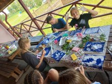 В рамках слета прошёл творческий мастер-класс «Рисование оттисками листьев на ткани», который развивал у детей творческое воображение и аккуратность. Ребята с увлечением осваивали новую технику ручного творчества.