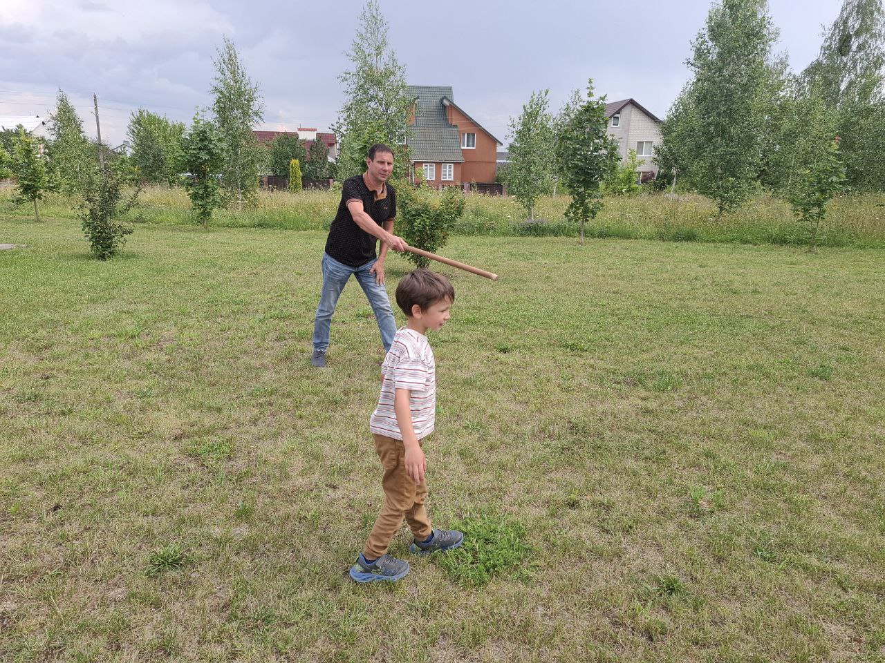 После трапезы было организованно спортивное мероприятие - старинная русская народная игра - городки.