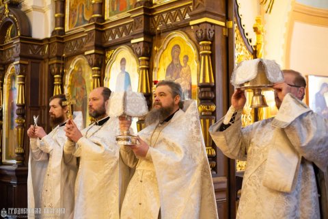 24 января в канун Недели 33-й по Пятидесятнице, попразднство Богоявления, в кафедральном соборе Покрова Пресвятой Богородицы г.Гродно совершили всенощное бдение. Настоятелю протоиерею Григорию Беляцкому сослужили клирики храма.