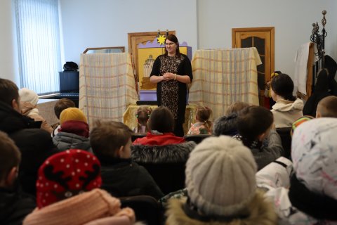 Группа младшего отделения воскресной школы кафедрального собора Покрова Пресвятой Богородицы г.Гродно «Зёрнышки» представила воспитанникам воскресной школы батлеечный спектакль «Маленький ослик Марии».