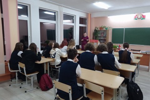 Педагог младшего отделения «Зёрнышки» воскресной школы кафедрального собора Покрова Пресвятой Богородицы г. Гродно Светлана Резник провела занятие на тему «Домашний уклад православной семьи» для учащихся Лицея №1 им. Б. М. Островского.
