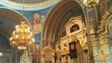 Архиерейский хор совместно с польским хором участвовал в праздничных богослужениях: Всенощном Бдении и Божественной Литургии, которые проходили при большом стечении народа и духовенства.