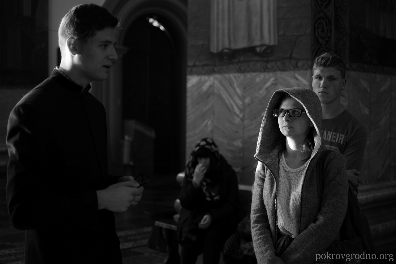 Во время экскурсии по коридорам, классам и спортивным помещениям семинарист Александр Сегень рассказал об учебе, распорядке дня и особенностях внутренней жизни, а руководитель братства, выпускник МинДС и ныне диакон гродненского кафедрального собора Александр Рудинский поделился своими воспоминаниями.