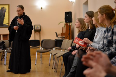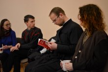 Увечары свята прадоўжылася ў актавай залі кафедральнага сабора. Айцец Павел і паэт Анатоль Брусевіч правялі тэматычную бяседу з чальцамі моладзевых братстваў гродзенскіх храмаў, адказалі на пытанні, пазнаемілі слухачоў са сваімі вершамі, досведам творчай працы і асаблівасцямі натхнення.