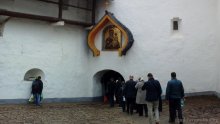 Ранним утром мы отправились в Савво - Крыпецком мужском монастыре Иоанна Богослова. Этот монастырь основан среди болот, святым Саввой Крыпецким в 1487 году. Приехали мы к Литургии, приложились к Святыням, вот основные из них: мощи Саввы Крыпецкого, основателя монастыря, и обретенные недавно. Мощи преподобного Корнилия Крыпецкого.