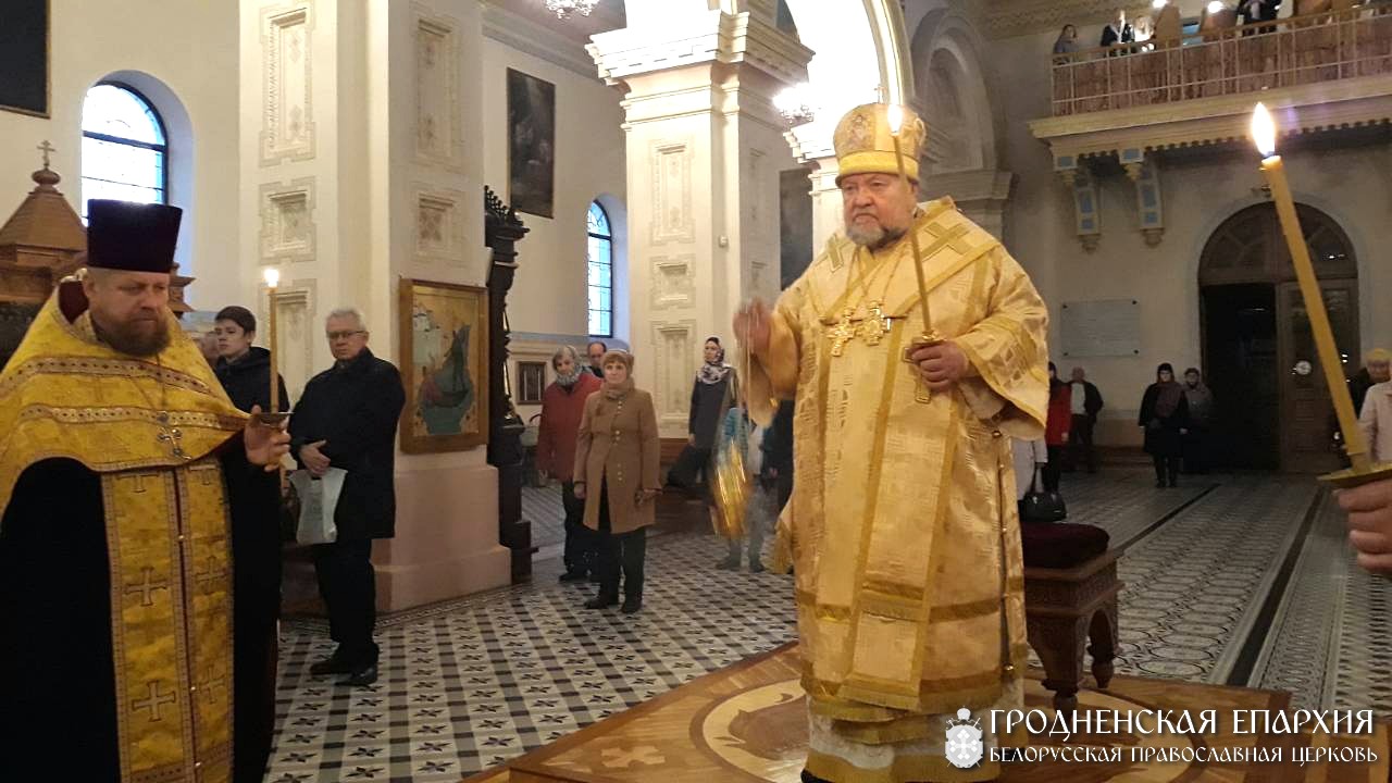 27 октября 2018 года, в субботу 22-й седмицы по Пятидесятнице, архиепископ Гродненский и Волковысский Артемий совершил всенощное бдение в Свято-Покровском кафедральном соборе города Гродно.
