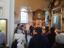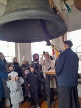 Клирик собора, иерей Димитрий Сидляревич, провёл для гостей экскурсию по храму, рассказав о истории его строительства и о главных святынях. В завершение экскурсии все желающие смогли почувствовать себя звонарями на колокольне.