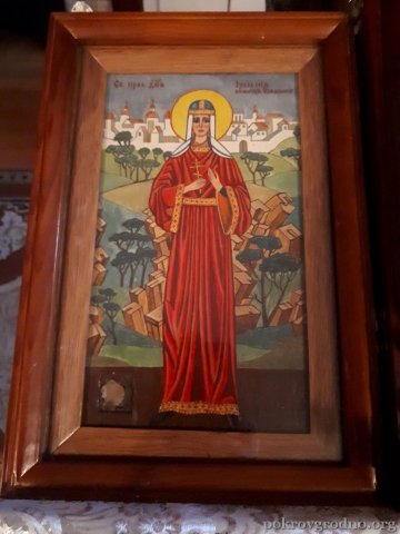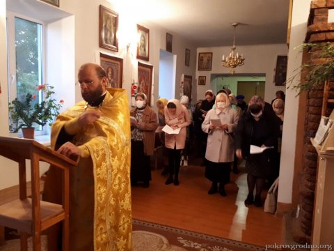 У сестер сестричества им. святой Иулиании Ольшанской Свято-Покровского кафедрального собора г. Гродно есть замечательная традиция – чтение акафиста святой праведной деве Иулиании, княжне Ольшанской. Обычно акафист читается по пятницам после вечернего повседневного богослужения в Свято-Ольгинской церкви. А 23 октября 2020 года по благословению духовника сестричества о. Владимира Борисевича сестры помолились в Храме в честь святой праведной девы Иулиании княжны Ольшанской д. Гожа Гродненского района.