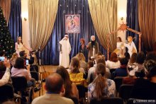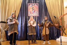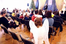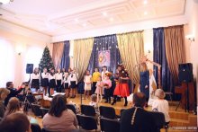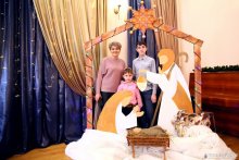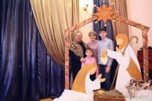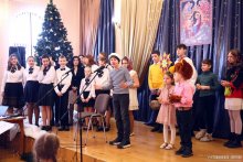 Зрителей встретил преображенный к этому дню зал, праздничная елка, сладкое угощение и представление от ребят, в котором они в театрализованной форме рассказали историю Рождества Христова.