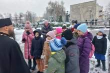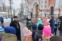Экскурсию провел духовник приходской воскресной школы протоиерей Владимир Борисевич для воспитанников 3 «А» класса. Священнослужитель рассказал экскурсантам об истории храма в разные исторические периоды, об его внешнем и внутреннем устройстве и убранстве, об особо почитаемых иконах храма.