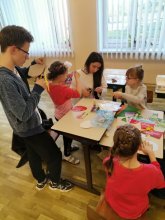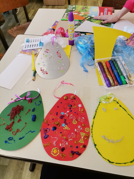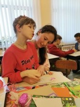 Ребята вместе изготовили пасхальную открытку, а отец Димитрий Сидляревич рассказал о традициях праздника: красных яйцах, куличах, колокольном звоне. В завершение молодёжь передала детям, которые находятся на постоянном пребывании в школе-интернате, сладкие подарки.