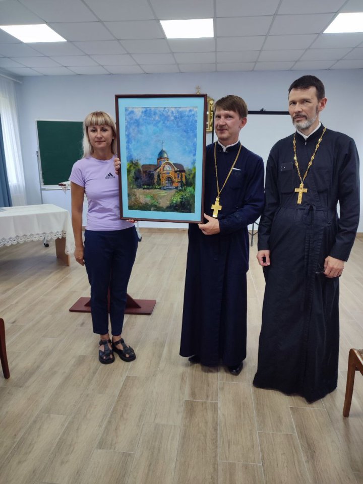 Сестра Елена подарила приходу прпмч.Серафима Жировицкого художественную работу с образом храма выполненную в особой технике.