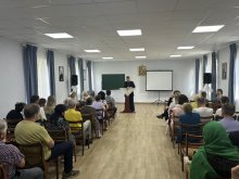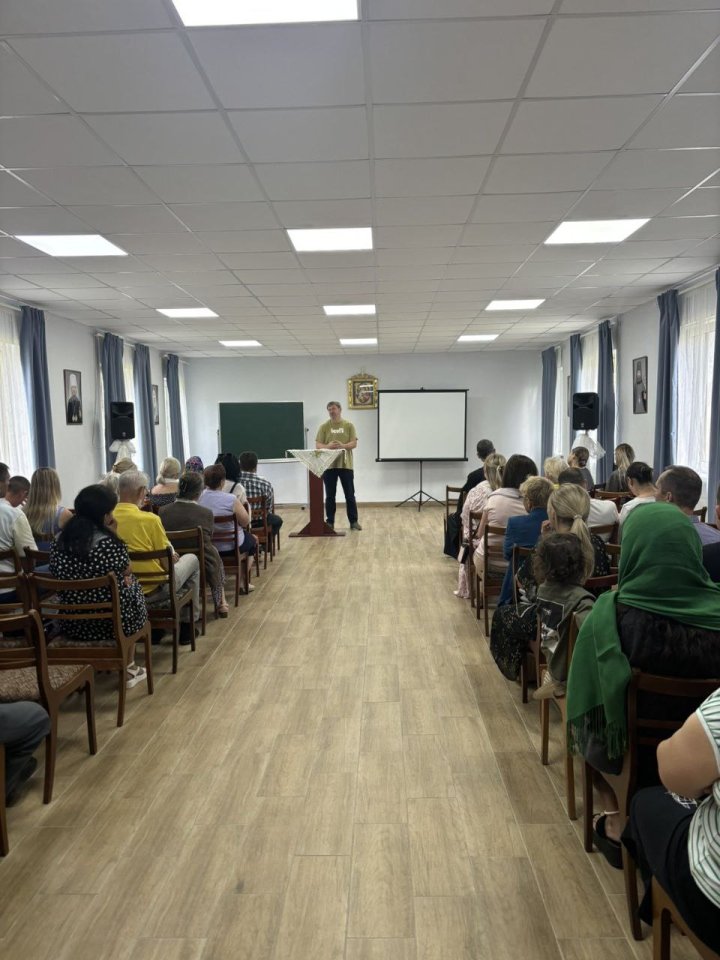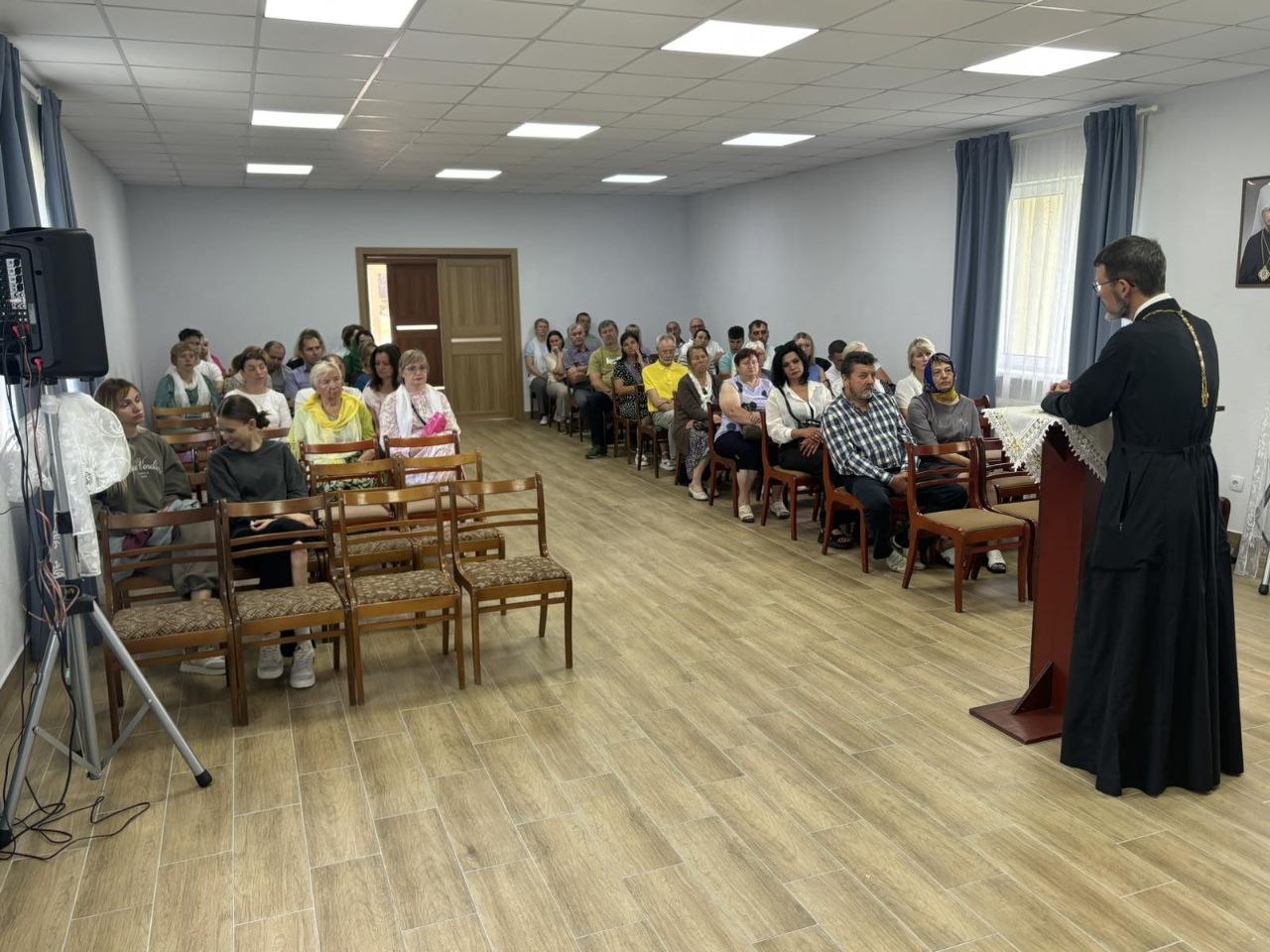 Причастившись Святых Христовых Таин гости встретились с прихожанами в актовом зале приходского комплекса.