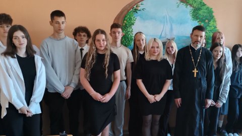 Учащиеся услышали отрывок Евангелия о укрощении бури Господом и вместе со священником разобрали различные кризисные моменты в жизни, а также путь выхода из них.