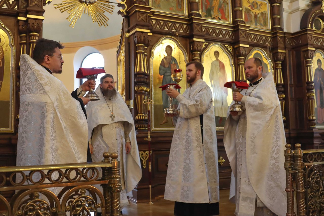 Диаконский чин возглавил протодиакон Димитрий Шепелев. Богослужебные песнопения исполнил архиерейский хор под управлением Юлии Шепелевой. После чтения Евангелия Его Высокопреосвященство совершил помазание верующих елеем.