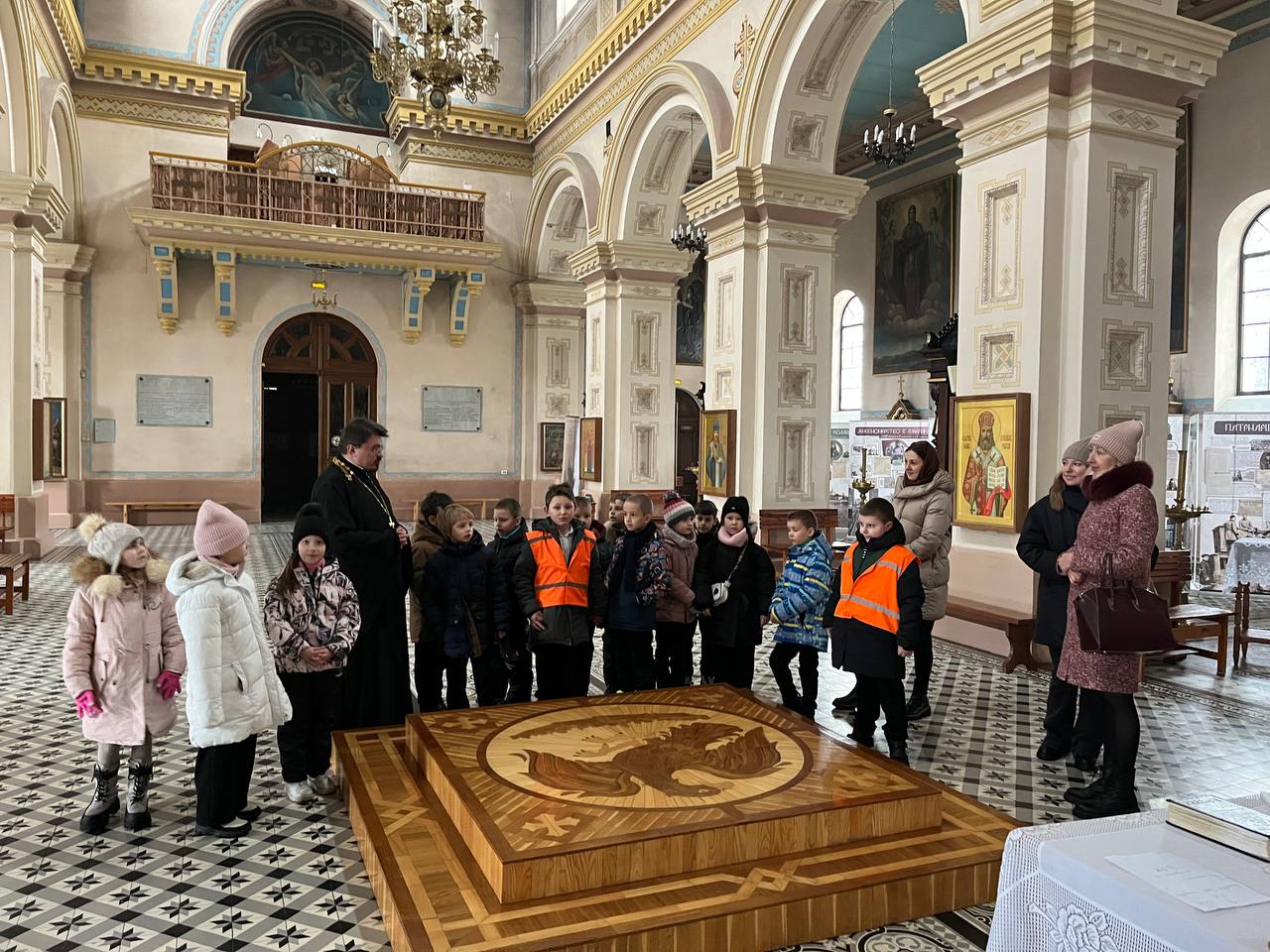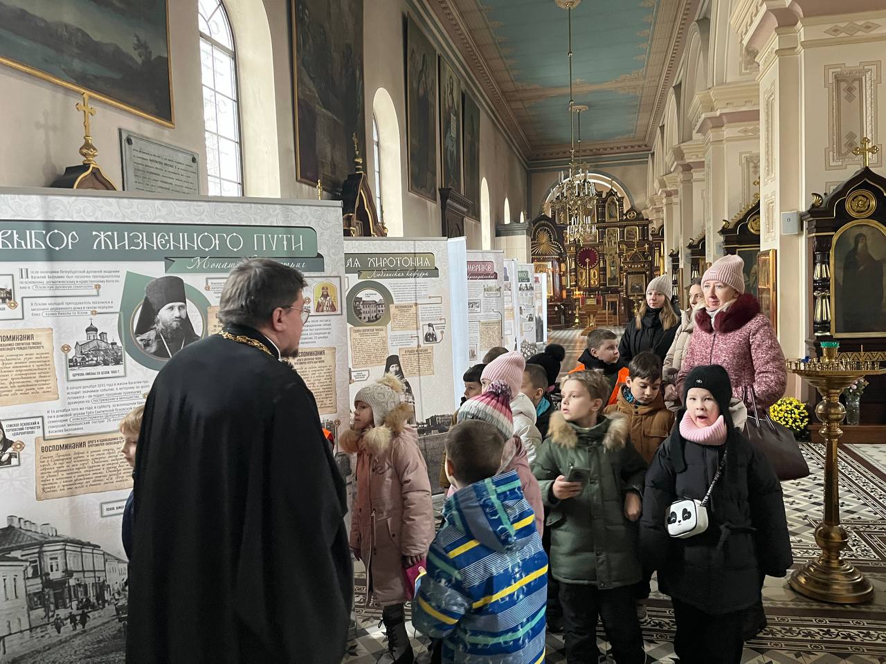 Экскурсию для юных гостей провёл клирик собора иерей Илья Перченко. Священнослужитель рассказал экскурсантам об истории храма, показал богослужебную утварь и ознакомил школьников с экспозицией, посвящённой 160-летию святителя Тихона, Патриарха Московского и всея Руси.