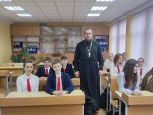 На уроке духовности в 7 «А» классе священнослужитель обсудил с учащимися тему «Свобода и зависимость». В процессе беседы был продемонстрирован мультфильм о зависимости от мобильного телефона «Пожиратели мозга».