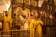 Диаконский чин возглавил протодиакон Дмитрий Шепелев. Богослужебные песнопения исполнил архиерейский хор под управлением Юлии Шепелевой. После чтения Евангелия Его Высокопреосвященство совершил помазание верующих елеем.