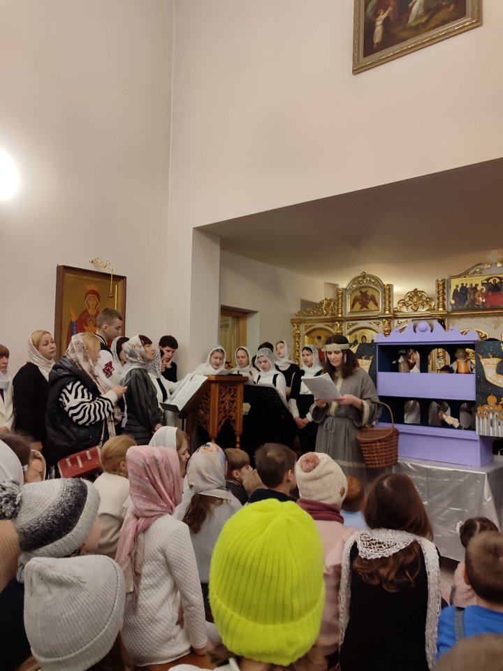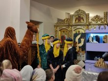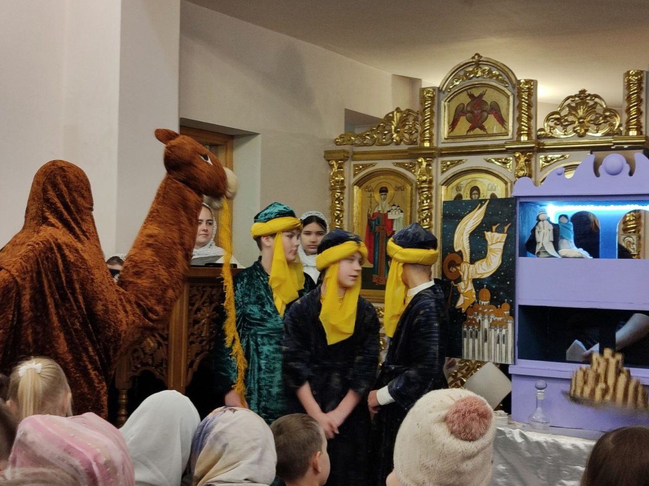 В Праздник Рождества Христова младшее отделение воскресной школы Покровского кафедрального собора "Зёрнышки" совместно со старшеклассниками впервые представили батлеечный спектакль «Рождественский гость».