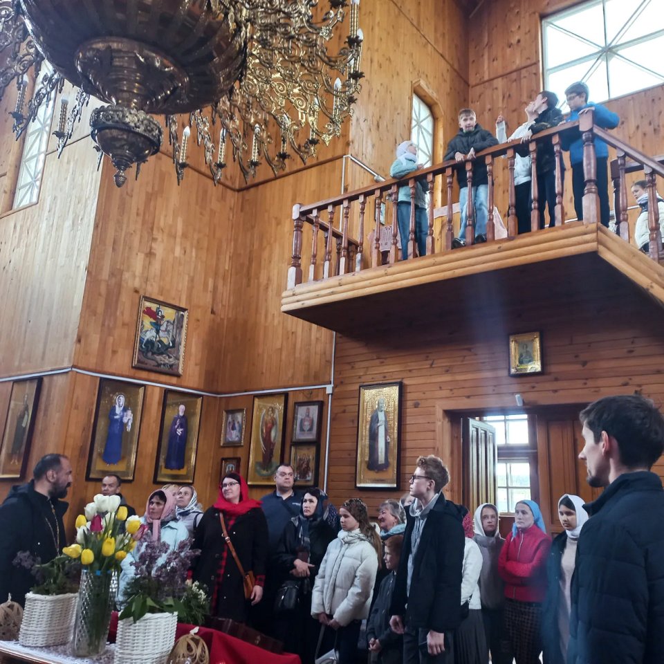 Также посетили Свято-Георгиевский храм в агр. Каменюки. Это один из красивейших деревянных храмов Каменецкого района Брестской области, высотой 37 метров, построенный в древне-русском стиле из деревянного бруса. Тепло встретили гостей и провели экскурсию настоятель храма иерей Андрей Мороз вместе с матушкой Инной, выпускницей нашей воскресной школы.