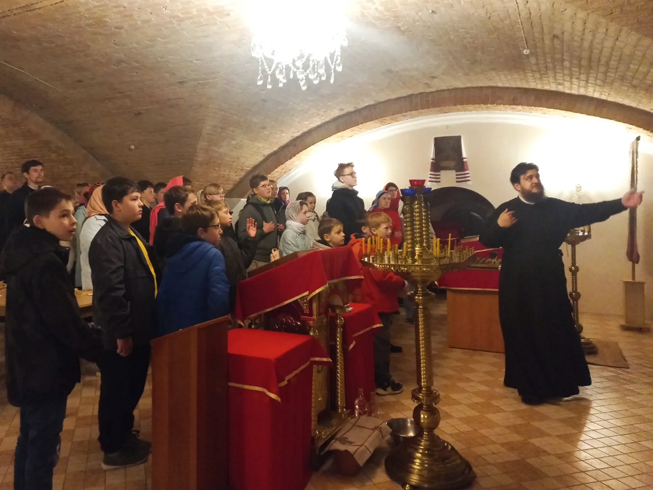 Во время посещения Свято-Симеоновского кафедрального собора диакон Михаил рассказал ребятам и родителям о житии преподобномученика Афанасия, игумена Брестского, к мощам которого все смогли приложиться, а также об истории храма и о святынях, находящихся в его стенах.  Все с интересом слушали и задавали интересующие вопросы.