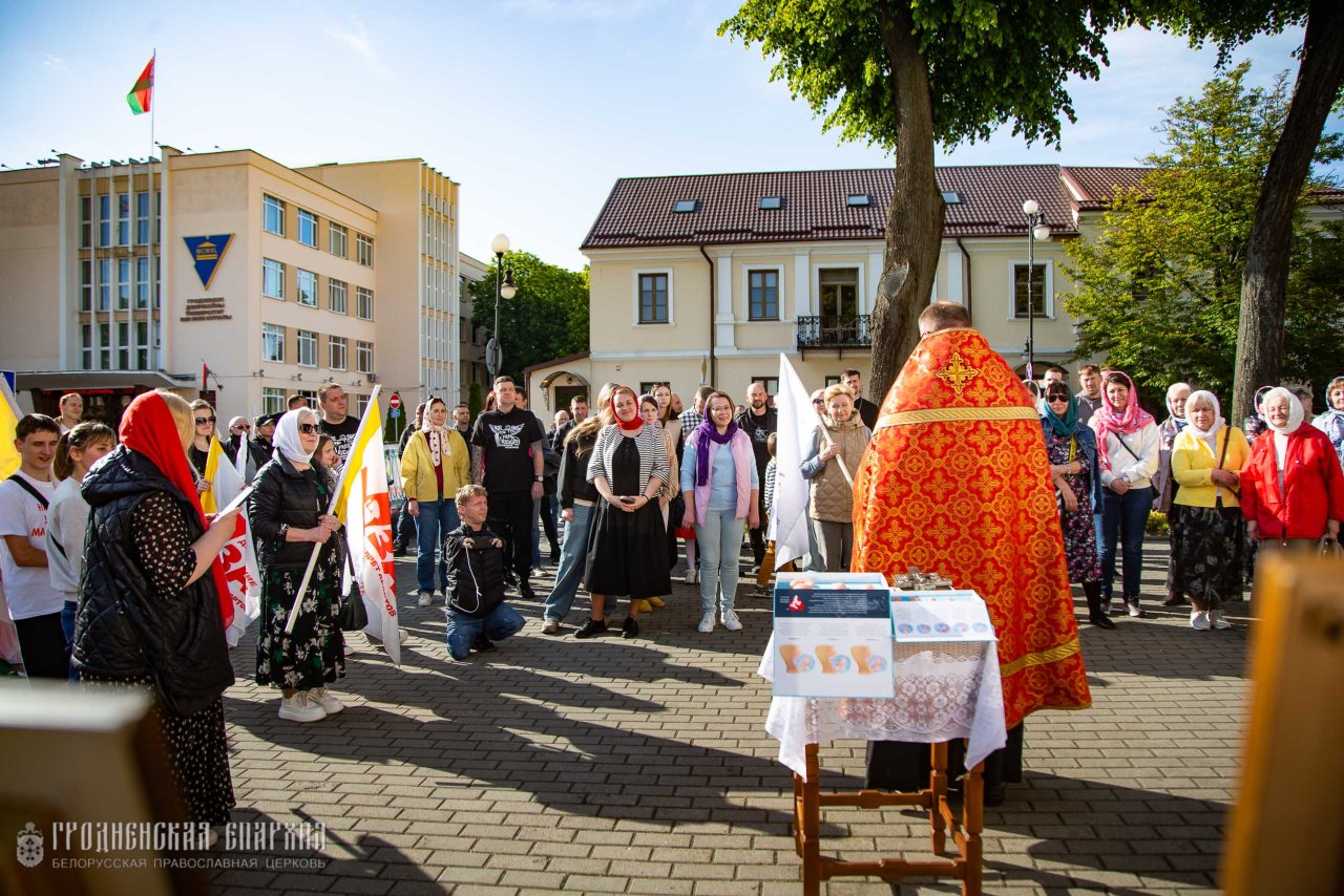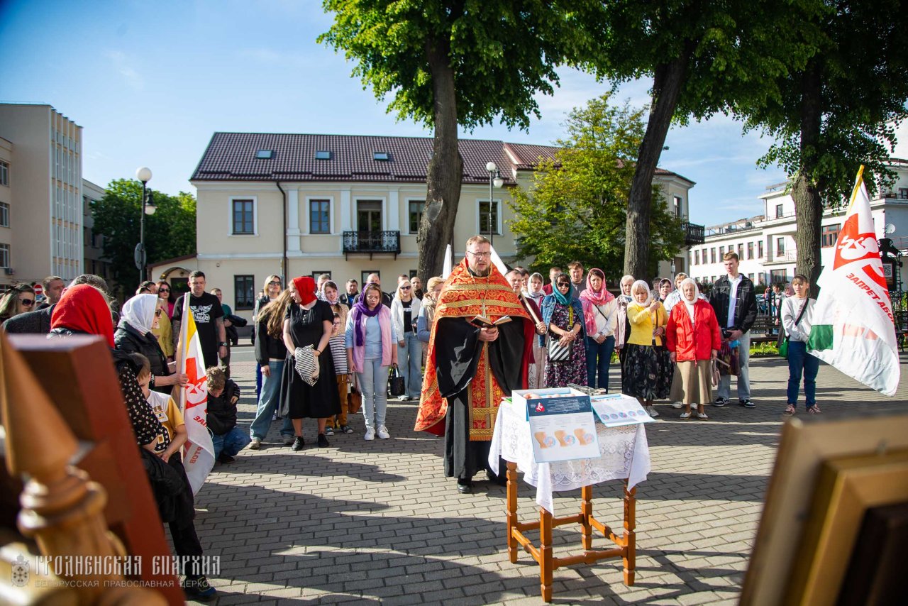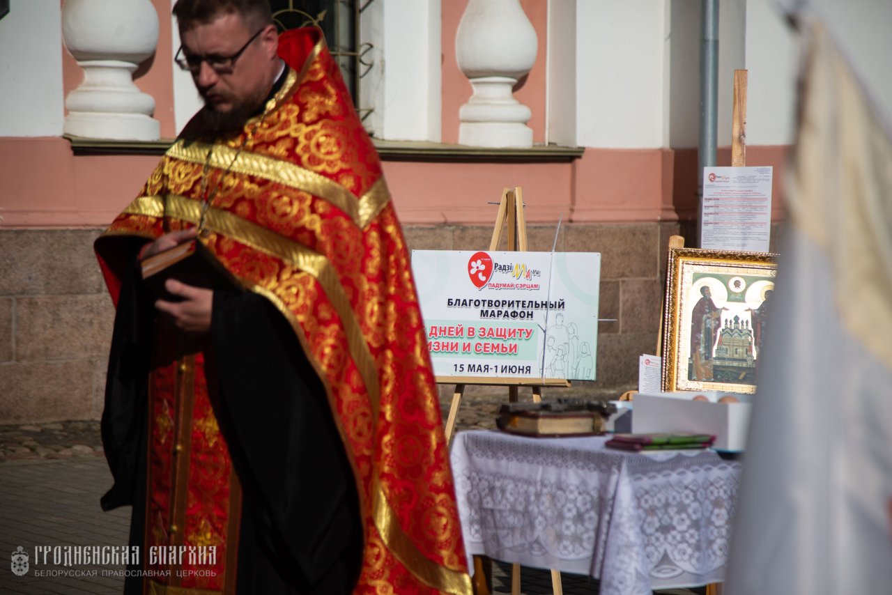 25 мая, в Неделю шестую по Пасхе, о слепом, в рамках 12-го благотворительного марафона "15 дней в защиту жизни" на площадке у кафедрального собора Покрова Пресвятой Богородицы города Гродно, клирик храма, координатор Гродненской епархии по вопросам защиты материнства и семейных ценностей иерей Александр Гук совершил молебен о защите жизни детей и укреплении семей.