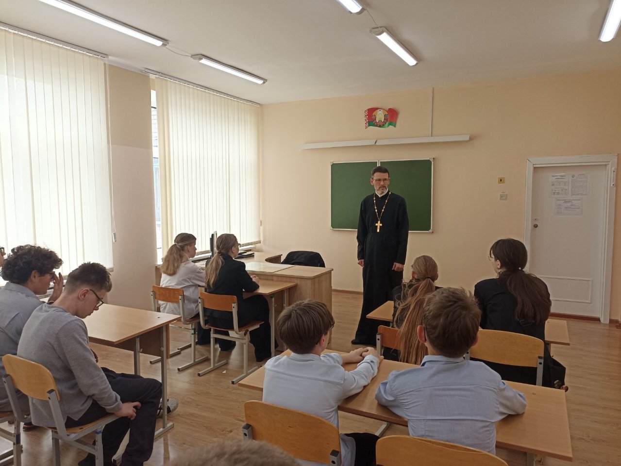 На встрече с учащимися священник рассказал о празднике Усекновения главы святого пророка Предтечи и Крестителя Иоанна.