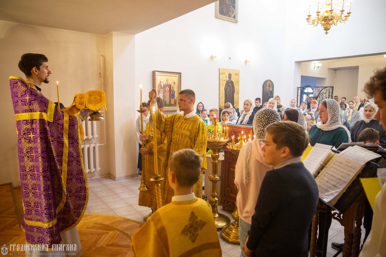 По благословению настоятеля кафедрального собора Покрова Пресвятой Богородицы города Гродно протоирея Григория Беляцкого 28 сентября 2025 года состоялась первая Божественная литургия в Свято-Ольгинском храме в новом 2025/2026 учебном году.