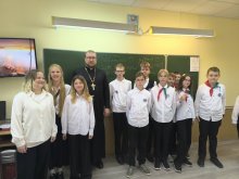 24 сентября в средней школе №28 имени В. Д. Соколовского города Гродно состоялась встреча иерея Александра Гука с учащимися 9 «В» класса по теме «Святость жизни». Священник рассказал школьникам о христианском понимании святости и объяснил, почему смысл человеческой жизни должен заключаться именно в стремлении к ней.