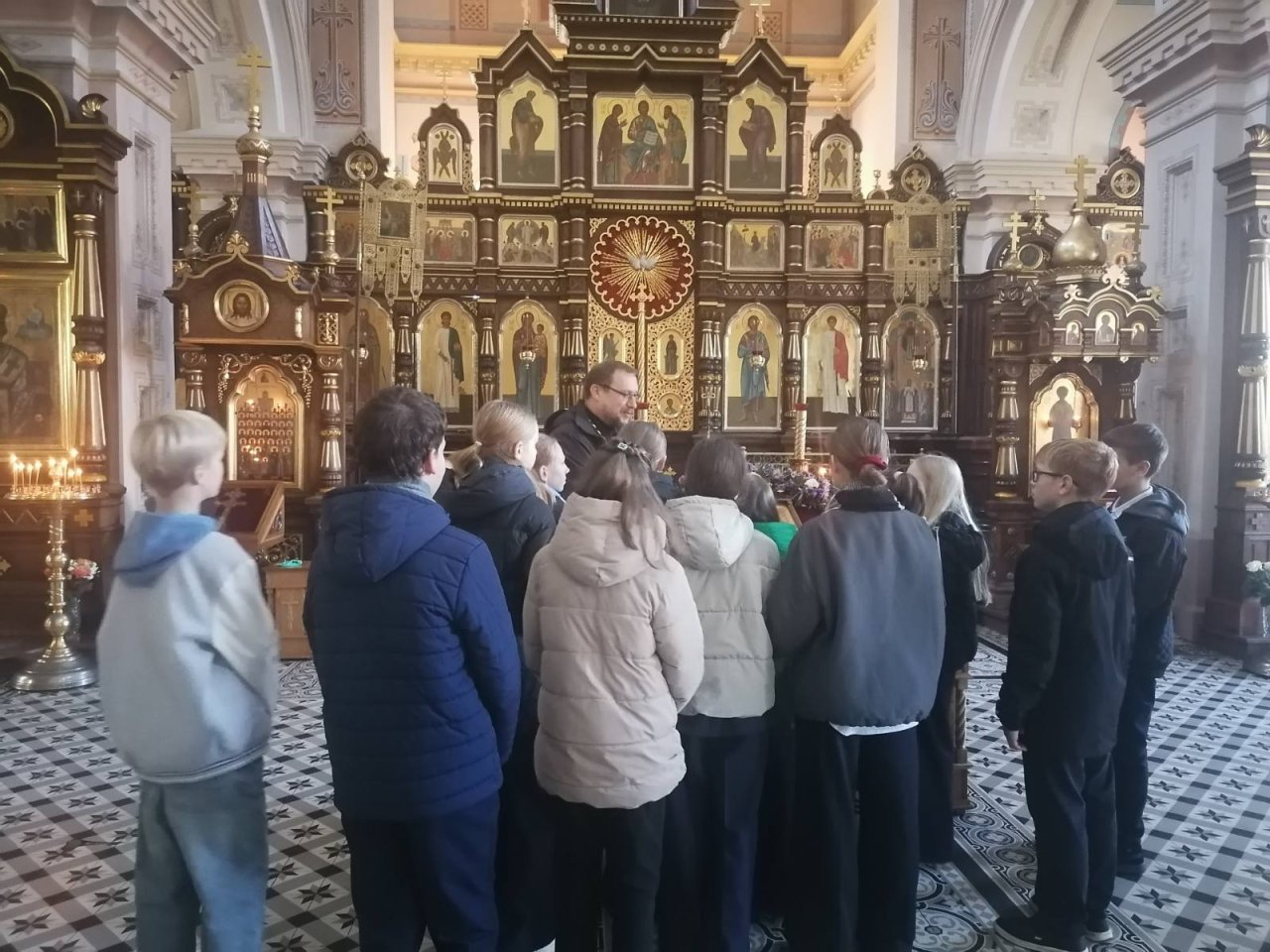 Клирик собора, иерей Александр Гук, рассказал ребятам историю возникновения храма, поведал о внутреннем устройстве православных церквей, рассказал о Таинстве Крещения и святости. Во время экскурсии все смогли поклониться святым иконам, приложиться к мощам святых праведников. В конце мероприятия у ребят была возможность посетить колокольню, позвонить в колокола.