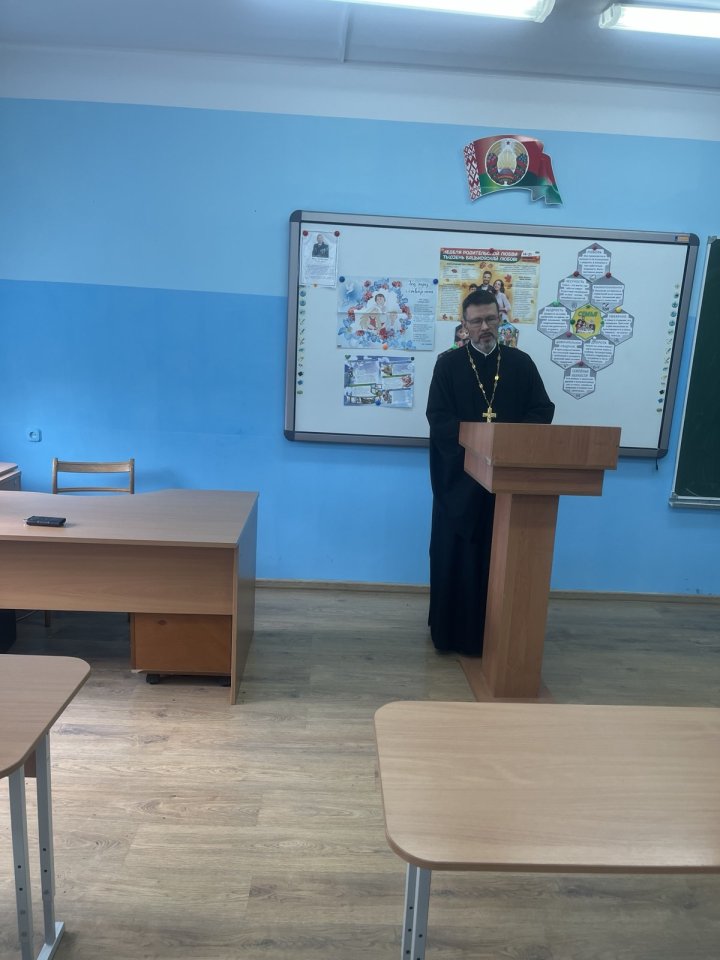 16 октября в рамках единого дня информирования клирик кафедрального собора Покрова Пресвятой Богородицы , руководитель православного общества трезвости "Елисаветинское" иерей Михаил Перец по приглашению администрации СШ №2 им. В.Ю.Саяпина г.Гродно встретился с коллективом данного учреждения образования.