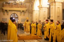Его Высокопреосвященству сослужили: протоиерей Григорий Беляцкий, настоятель кафедрального собора Покрова Пресвятой Богородицы; иерей Александр Гук, руководитель отдела по церковной благотворительности и социальному служению; клирики кафедрального собора.