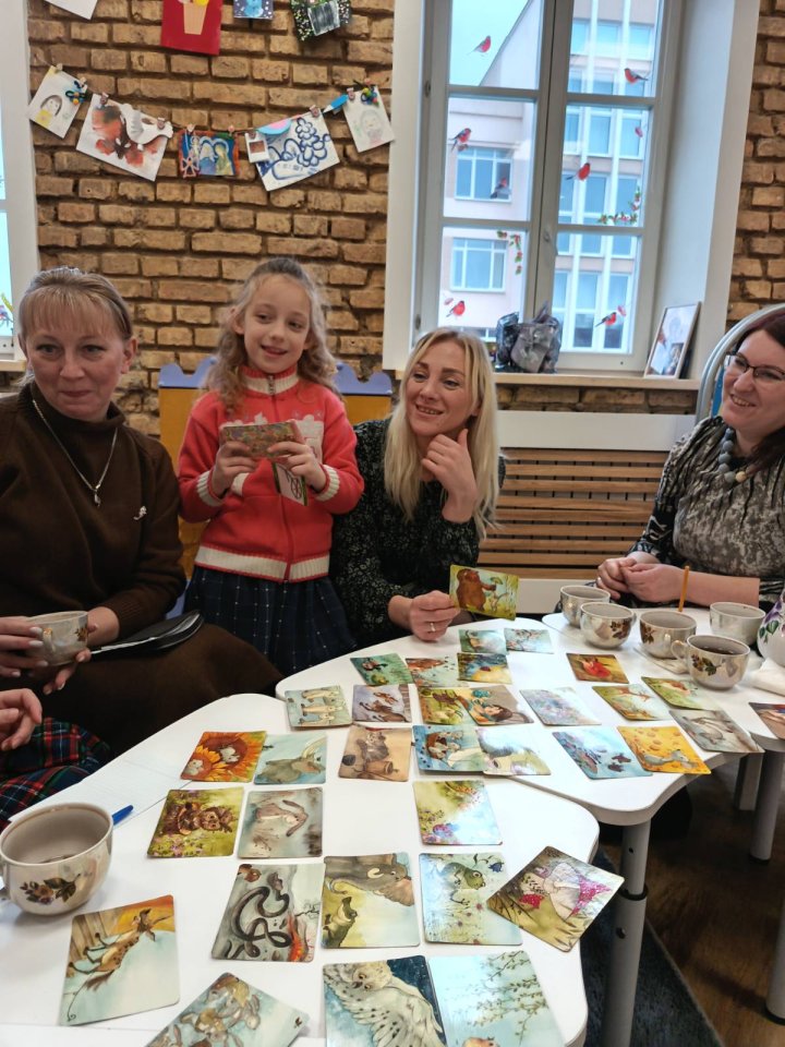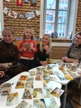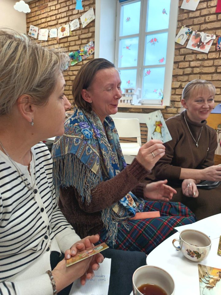 Елена Макаревич и Светлана Резник продемонстрировали структуру и виды занятий и кружков, показав элементы уроков с использованием метафорических ассоциативных карточек, мягких игрушек и кукол Батлейки.