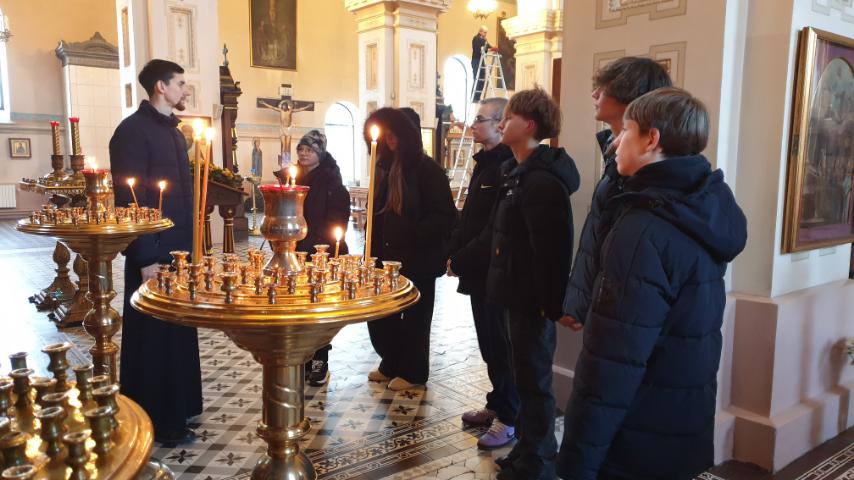 Клирик собора, иерей Димитрий Сидляревич, провёл для школьников экскурсию по храму. Священнослужитель рассказал о житии святителя Николая, архиепископа Мир Ликийских, Чудотворца, а также о святом Спиридоне Тримифунтском.