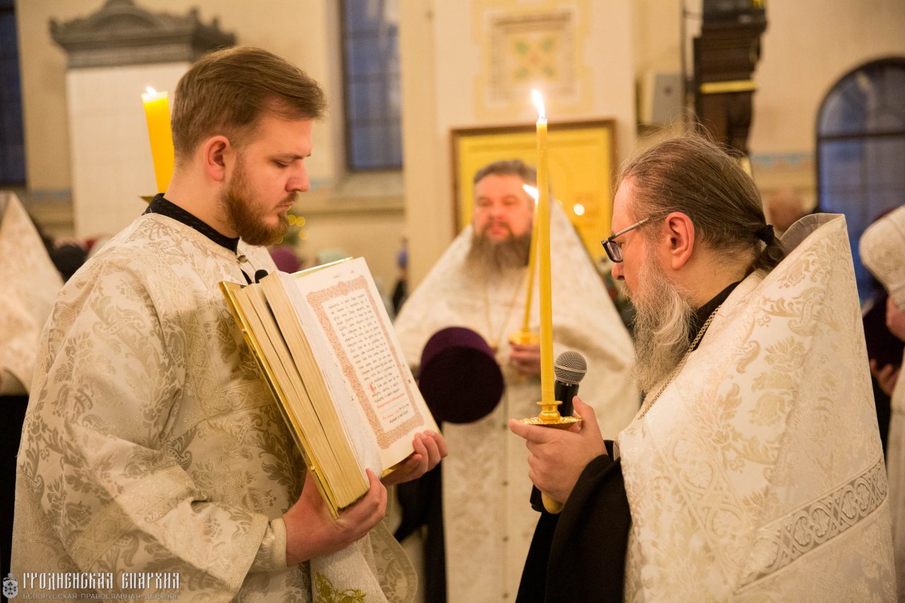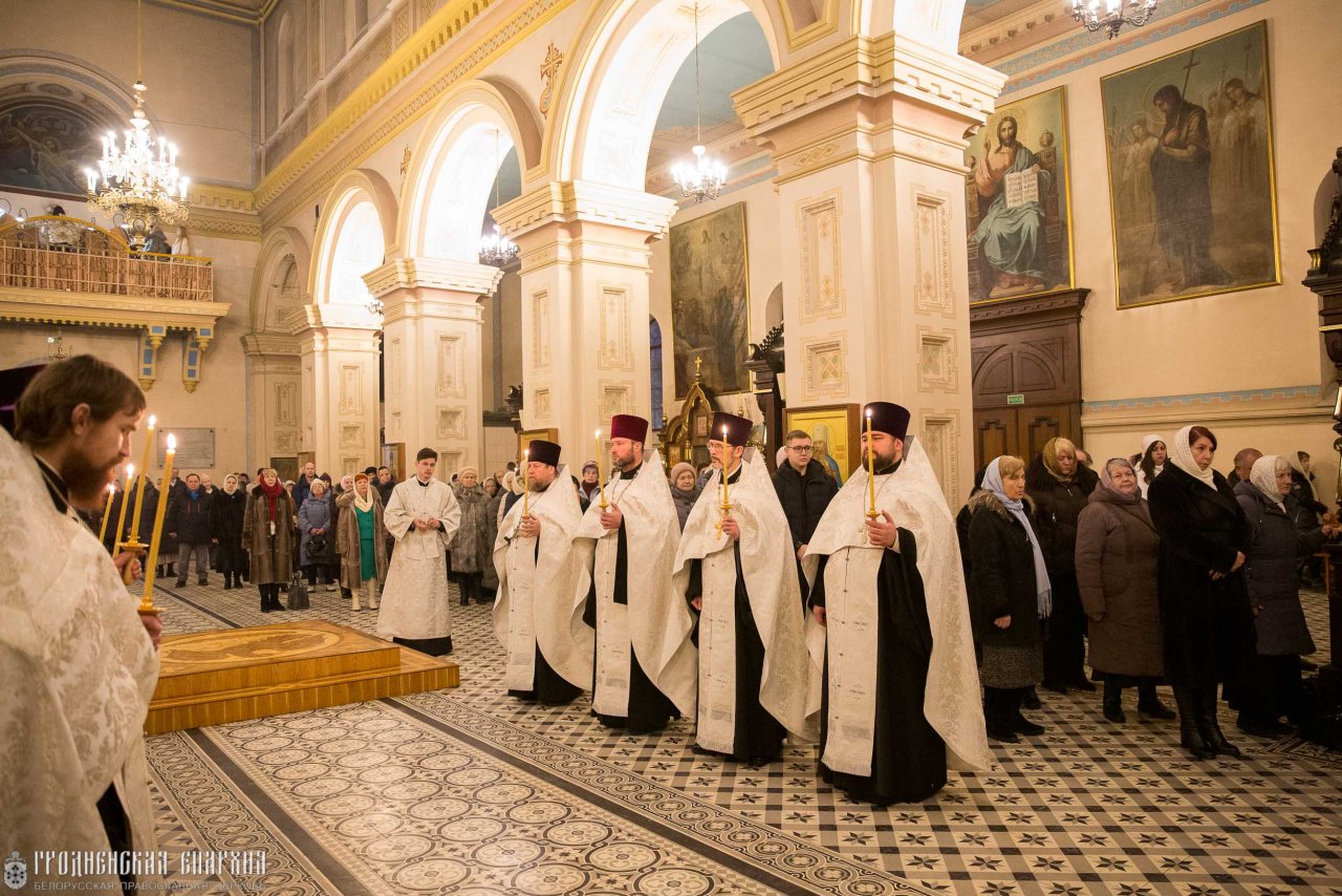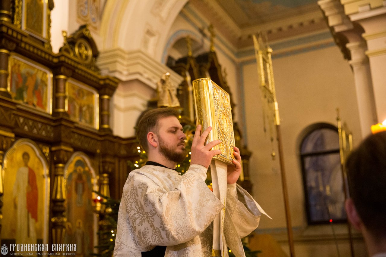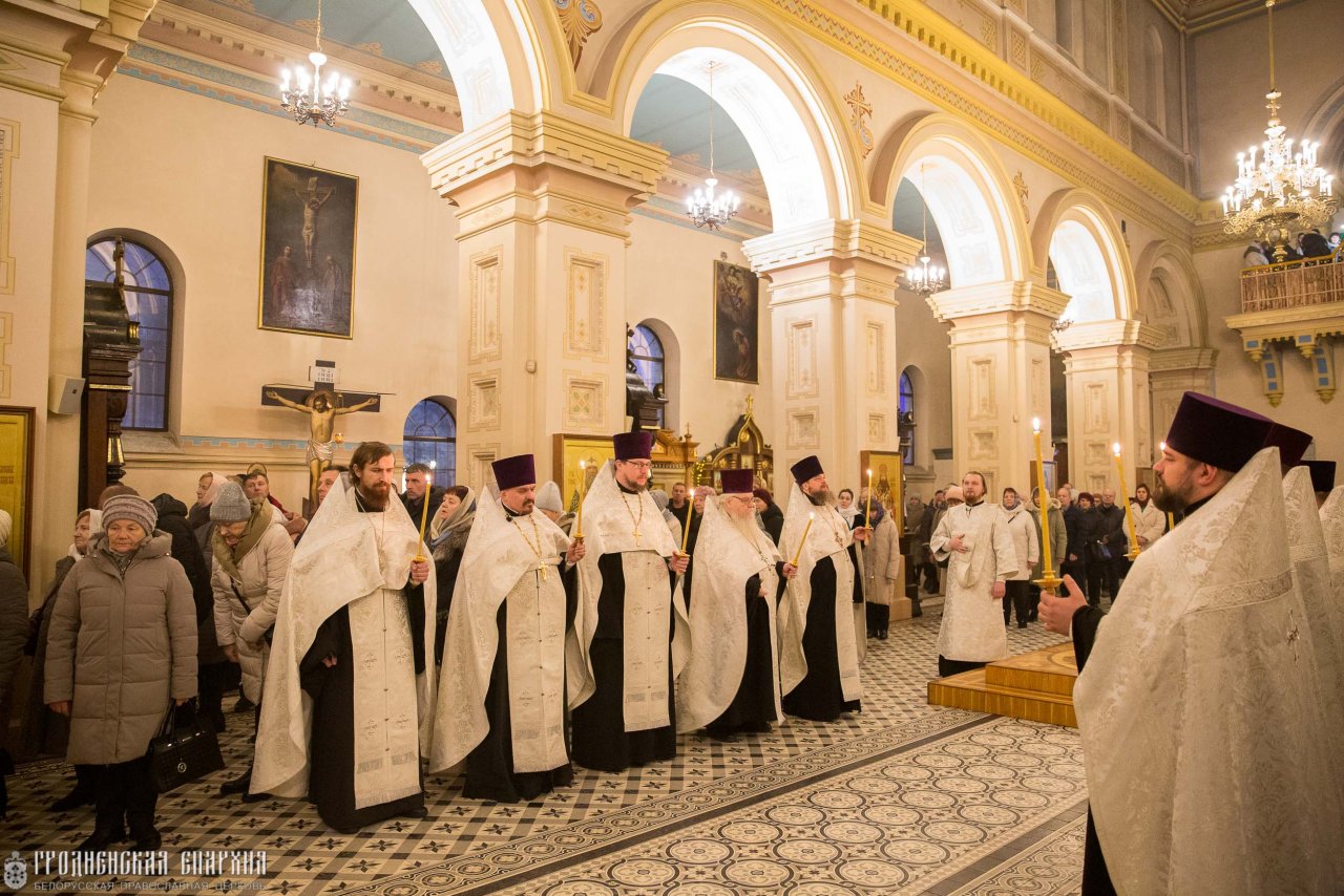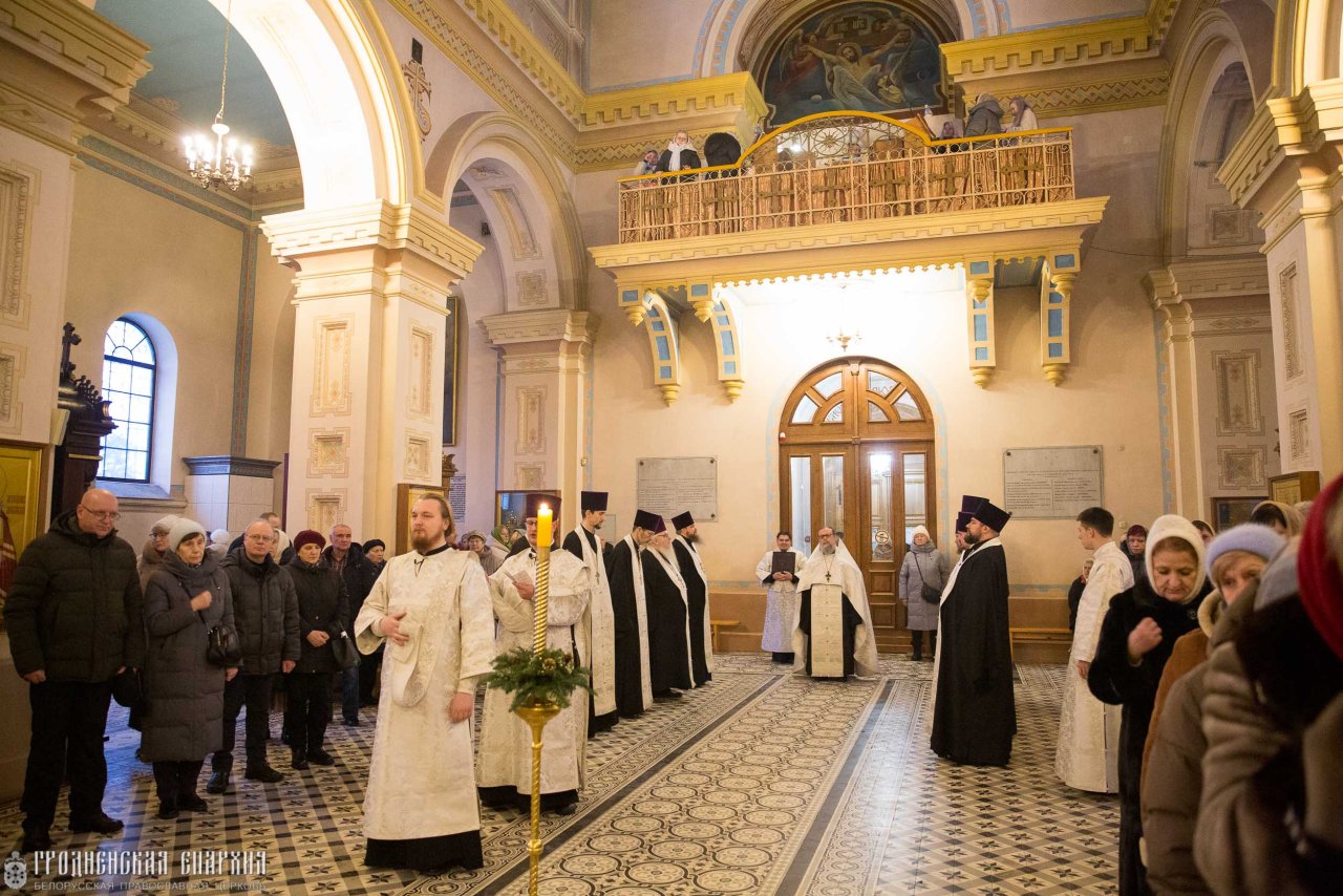 13 января канун праздника Обрезания Господня всенощное бдение в кафедральном соборе Покрова Пресвятой Богородицы г.Гродно в сослужении настоятеля протоиерея Григория Беляцкого и клириков храма совершил преподаватель Минской духовной семинарии архимандрит Никодим (Генералов).