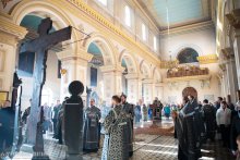Богослужебные песнопения исполнил архиерейский хор под управлением Юлии Шепелевой.