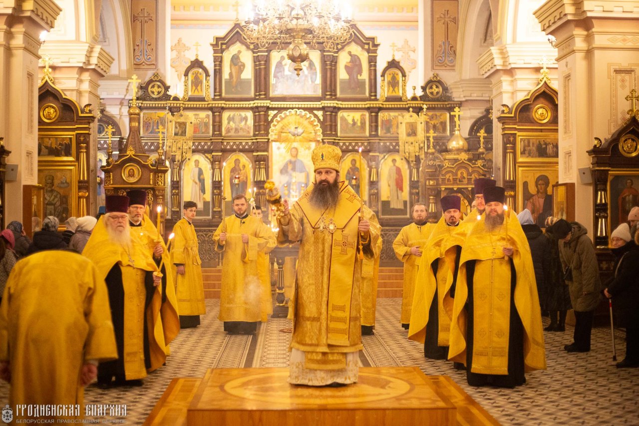 10 января, в канун Недели 31-й по Пятидесятнице, архиепископ Гродненский и Волковысский Антоний совершил всенощное бдение в кафедральном соборе Покрова Пресвятой Богородицы г. Гродно. Его Высопреосвященству сослужили: протоиерей Григорий Беляцкий, настоятель кафедрального собора Покрова Пресвятой Богородицы; протоиерей Андрей Бондаренко, духовник Гродненской епархии; иерей Александр Гук, руководитель отдела по церковной благотворительности и социальному служению; клирики кафедрального собора.