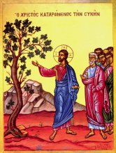 В Евангелиях рассказывается о том, что после торжественного входа в Иерусалим, в тот же день Иисус удалился из города в Вифанию и провел там ночь. Возвращаясь утром в Иерусалим, Христос захотел есть. Он подошел к смоковнице (т.е. инжирному дереву), но не нашел на ней плодов. Евангелист Марк объясняет это тем, что еще не время было собирания смокв (Мк.11:13). И тогда Спаситель сказал смоковнице: да не будет же впредь от тебя плода вовек. И смоковница тотчас засохла (Мф.21:19). Некоторые читатели могут удивиться кажущейся несправедливости Господа: как это так Он наказал ни в чем не повинное дерево, хотя оно по всем законам природы просто не могло тогда принести плодов. Это недоумение, по крайней мере, странно: речь ведь идет всего лишь о дикорастущем дереве, а применять в отношении бездушных предметов категории справедливости абсурдно. Проклятие смоковницы не более, чем символ, которым Христос хотел сказать людям нечто существенно важное. Святитель Иоанн Златоуст так объясняет поступок Спасителя: «Христос всегда благодетельствовал и никого не наказывал, между тем надлежало Ему показать и опыт Своего правосудия, чтобы и ученики, и иудеи узнали, что Он хотя и мог иссушить, подобно смоковнице, своих распинателей, однако же добровольно предает Себя на распятие, и не иссушает их. Он не захотел показать этого над людьми, но явил опыт Своего правосудия над растением». Еще раньше апостолы хотели попросить своего Учителя дать им власть низвести огонь на самарянское селение, в котором их не приняли. Господь запретил им это, сказав: не знаете, какого вы духа; ибо Сын Человеческий пришел не губить души человеческие, а спасать (Ин.19:55-56). Сын Божий, Судия вселенной, единственный раз проявил Себя в этом качестве, да и то в отношении не человека, а бездушного дерева, которое, к тому же, по преданию, уже было подточено червями.