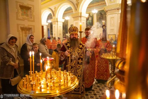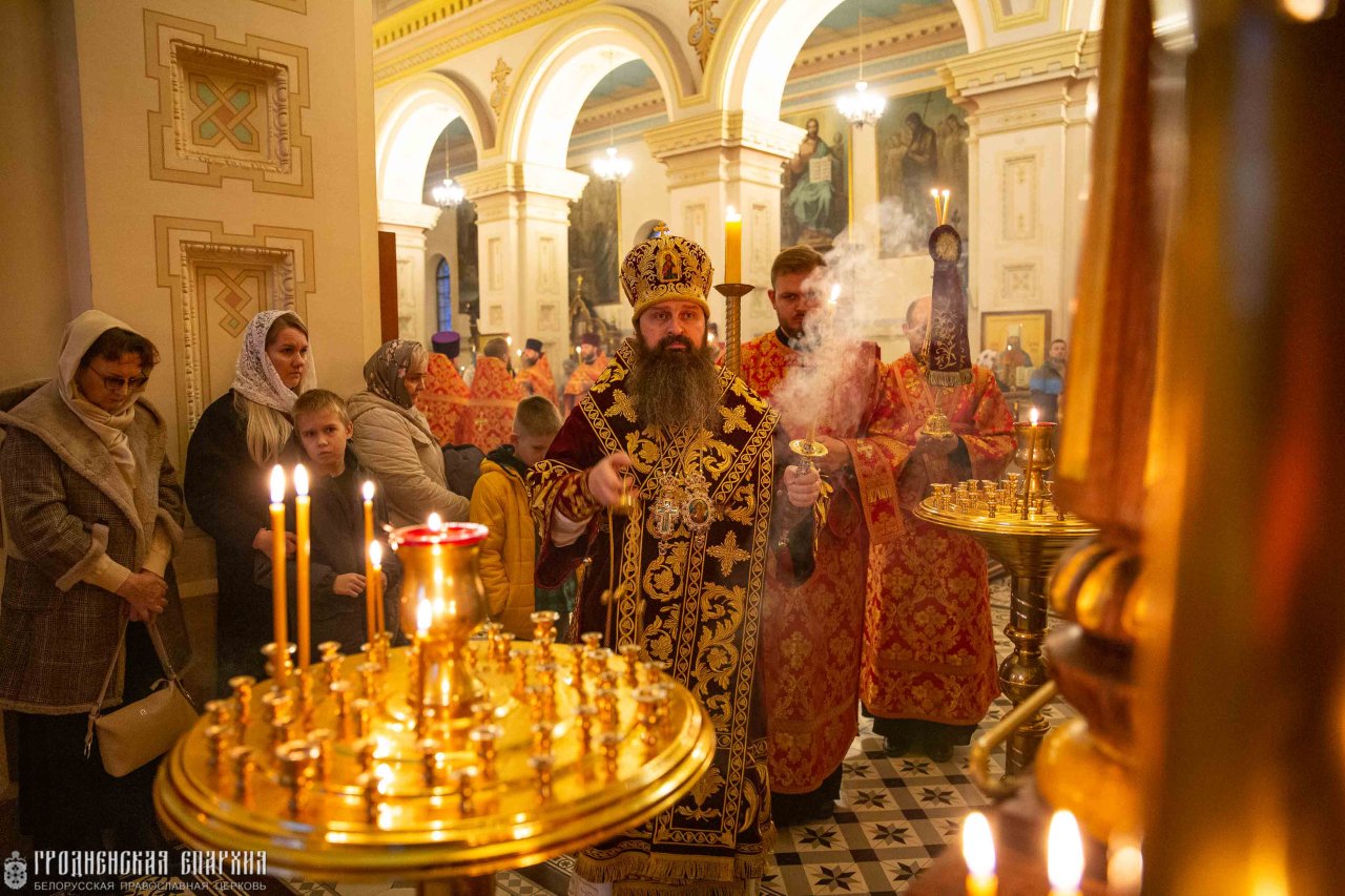 1 ноября, в канун Недели 21-й по Пятидесятнице, дня памяти Собора новомучеников и исповедников земли Белорусской, архиепископ Гродненский и Волковысский Антоний совершил всенощное бдение в кафедральном соборе Покрова Пресвятой Богородицы города Гродно. Его Высокопреосвященству сослужили: протоиерей Григорий Беляцкий, настоятель кафедрального собора Покрова Пресвятой Богородицы; митрофорный протоиерей Александр Ноздрин; протоиерей Андрей Бондаренко, духовник Гродненской епархии; иерей Александр Гук, руководитель отдела по церковной благотворительности и социальному служению; клирики кафедрального собора.